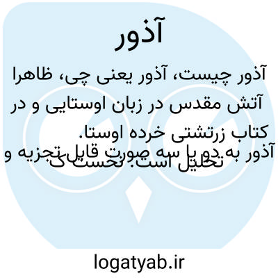 ظاهرا آتش مقدس در زبان اوستایی و در کتاب زرتشتی خرده اوستا. آذور به دو یا سه صورت قابل تجزیه و تحلیل است. نخست کل اصطلاح بدون هجاوندی همان آذر یا آزر است اصطلاحی بسیار کهن و نام یکی از کسان حضرت ابراهیم. دوم به معنی فعل خطا کردن یا اشتباه رفتن است و سه دیگر نام آخرین ماه پاییز از سال شمسی است.