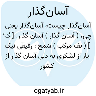 ( آسان گذار ) ( اسم ) ۱ - آنکه سماجت دارد سمج. ۲ - کسی که از زخارف دنیا باسانی گذرد و غم دنیا نخورد. ۳ - سهل انگار مسامح