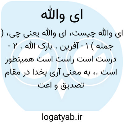 ( جمله ) ۱ - آفرین. بارک الله. ۲ - درست است راست است همینطور است.، به معنی آری بخدا در مقام تصدیق و اعتراف به کسی گفته میشود.