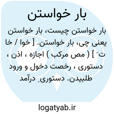 بار خواستن. [ خوا / خا ت َ ] ( مص مرکب ) اجازه، اذن، دستوری، رخصت دخول و ورود طلبیدن. دستوری ِ درآمدن نزد شاه یا امیری کسب کردن: