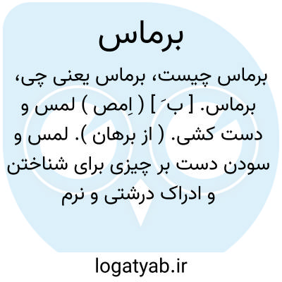 برماس. [ ب َ ] ( اِمص ) لمس و دست کشی. ( از برهان ). لمس و سودن دست بر چیزی برای شناختن و ادراک درشتی و نرمی و سردی و گرمی آن و مالیدن چیزی بر چیزی. ( از آنندراج ). برمچ. پرماس. پرواس. بشار. || ( اِ ) لامسه. ( از برهان ) ( از آنندراج ). قوه لامسه. ( ناظم الاطباء ).