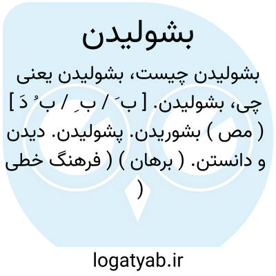 بشولیدن. [ ب َ / ب ِ / ب ُ دَ ] ( مص ) بشوریدن. پشولیدن. دیدن و دانستن. ( برهان ) ( فرهنگ خطی ) ( صحاح الفرس ) ( سروری ). دیدن و نگریستن. ( ناظم الاطباء ). دیدن. ( فرهنگ نظام ):