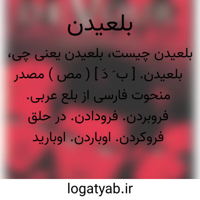 ( مصدر ) ( بلعیدبلعد خواهد بلعید ببلع بلعنده بلعیده ) ۱- در حلق فرو کردن. ۲- خوردن. یا بلعیدن خواستن زنی را. از نهایت اشتیاق بدو داشتن.