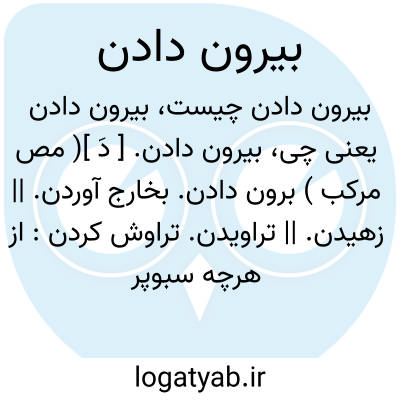بیرون دادن. [ دَ ]( مص مرکب ) برون دادن. بخارج آوردن. || زهیدن. || تراویدن. تراوش کردن: