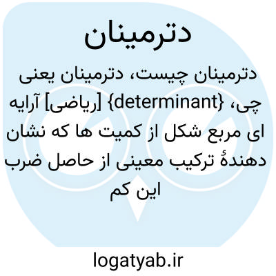 {determinant} [ریاضی] آرایه ای مربع شکل از کمیت ها که نشان دهندۀ ترکیب معینی از حاصل ضرب این کمیت ها باشد
