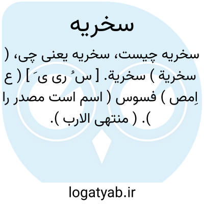 ( سخریة ) سخریة. [ س ُ ری ی َ ] ( ع اِمص ) فسوس ( اسم است مصدر را ). ( منتهی الارب ).