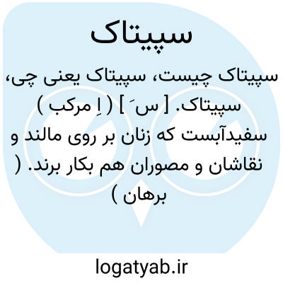 سپیتاک. [ س َ ] ( اِ مرکب ) سفیدآبست که زنان بر روی مالند و نقاشان و مصوران هم بکار برند. ( برهان ) ( آنندراج ). || مخفف سپیدتاک ( سفیدتاک ) هم هست و آن بوته ای است که بعربی کرمة البیضا گویند. ( برهان ) ( آنندراج ). رجوع به سپتاک شود.
