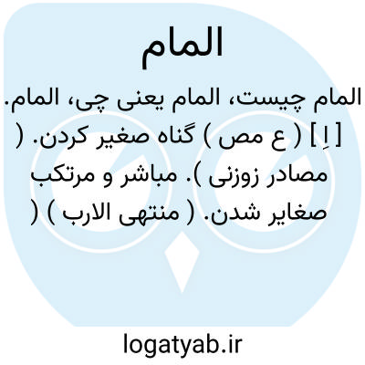 المام. [ اِ ] ( ع مص ) گناه صغیر کردن. ( مصادر زوزنی ). مباشر و مرتکب صغایر شدن. ( منتهی الارب ) ( آنندراج ). ارتکاب لَمَم یعنی گناهان کوچک. ( از اقرب الموارد ). || گناه کردن. ( از اقرب الموارد ). || فرودآمدن. ( تاج المصادر بیهقی ) ( آنندراج ). فرودآمدن کسی را. ( منتهی الارب ) ( از اقرب الموارد ). فرود آمدن چیزی یا کسی: فلجاء امیرالمؤمنین عقب هذه القادمة التی المت و الهادمة التی اظلت الی مایریداﷲ منه. ( تاریخ بیهقی چ ادیب ص 300 ). || نزدیک رسیدن کودک به بلوغ. ( منتهی الارب ). نزدیک به بلوغ شدن کودک. ( آنندراج ). صفت آن مُلِم است. ( از اقرب الموارد ). || به رُطَبی نزدیک شدن خرمابن. ( از منتهی الارب ) ( از آنندراج ) ( از اقرب الموارد ). || نزدیک آمدن کاری که شود. یقال: اَلَم َّیفعل کذا، ای کاد؛ یعنی نزدیک است که چنان کند. ( منتهی الارب ). نزدیک شدن چیزی، و گاهی بجای افعال مقاربه استعمال میشود. ( از اقرب الموارد ). قصد کردن و نزدیک شدن بچیزی. ( المعجم فی معاییر اشعار العجم ). || دانستن معنی. ( از اقرب الموارد ). || در اصطلاح شاعران، اخذ معنی شعری که دیگری گفته باشد. ( آنندراج ). در وفیات الاعیان ( چ طهران ص 24 ) آمده:فقال له ابن ابی دؤاد: هذاالمعنی تفردت به او اَخذته ؟ قال هولی و قد الممت فیه بقول ابی نواس - انتهی.