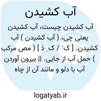 ( آب کشیدن ) آب کشیدن. [ ک َ / ک ِ دَ ] ( مص مرکب ) حمل آب از جایی. || بیرون آوردن آب با دلو و مانند آن از چاه و حوض و جز آن. نَزْح. || تطهیر شرعی و نمازی کردن چیزی متنجس. || شستن جامه صابون زده با آب خالص تا اثر صابون بشود. || آب کشیدن زخم و جراحتی؛ ریم و چرک پیداکردن آن بسبب آلوده شدن با آب ناپاک. هو کشیدن. || آب کشیدن غذائی؛ خورنده را تشنگی آوردن.
