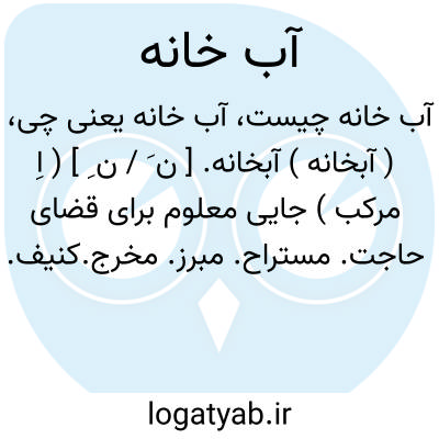 ( آبخانه ) آبخانه. [ ن َ / ن ِ ] ( اِ مرکب ) جایی معلوم برای قضای حاجت. مستراح. مبرز. مخرج.کنیف. مغتسل. متوضا. بیت الفراغ. مبال. خلا. بیت التخلیه. میضاء. مذهب. آبشتنگاه. تشتخانه. ادب خانه. جایی.صحت خانه. قدمگاه. کریاس. بیت الماء. بیت الخلاء. ضروری. کابینه. قدم جا. طهارتخانه. و گاه از آن به بیرون وسرِ آب تعبیر کنند: روزی شیخ ابوسعید رحمه اﷲ همی شد با صوفیان، فرا جایی رسید که چاه آبخانه پاک میکردند و نجاست بر راه بود... ( کیمیای سعادت ). || در اصطلاح اهل خراسان قسمتی از کاریز باشد که از آن آب تراوش کند و آب قنات از آنجا خیزد.