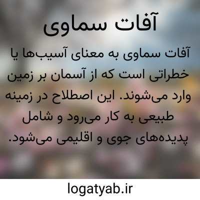 آفات سماوی به معنای آسیبها یا خطراتی است که از آسمان بر زمین وارد میشوند. این اصطلاح عمدتاً در زمینه طبیعی به کار میرود و شامل پدیدههای جوی و اقلیمی مانند تگرگ، صاعقه، باران شدید یا طوفان میشود.