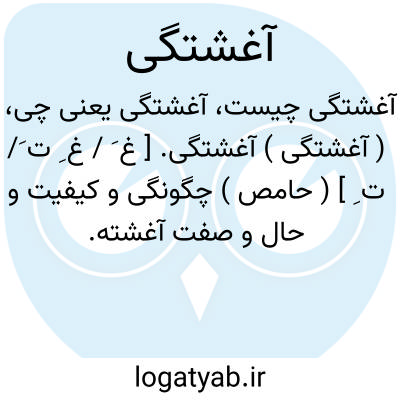 ( آغشتگی ) آغشتگی. [ غ َ / غ ِ ت َ/ ت ِ ] ( حامص ) چگونگی و کیفیت و حال و صفت آغشته.