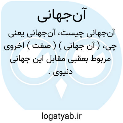( آن جهانی ) ( صفت ) اخروی مربوط بعقبی مقابل این جهانی دنیوی.