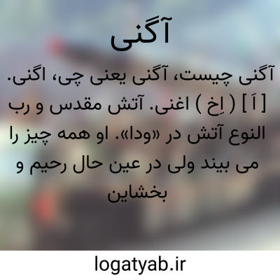 اگنی. [ اَ ] ( اِخ ) اغنی. آتش مقدس و رب النوع آتش در «ودا». او همه چیز را می بیند ولی در عین حال رحیم و بخشاینده است. از این خدای آتش نقش برجسته ای متعلق به قرن دهم میلادی در موزه گیمه پاریس موجود است. ( از فرهنگ فارسی معین ). و رجوع به فهرست مزدیسنا و ادب پارسی و فرهنگ ایران باستان ص 69 و یشتها ج 1 ص 40 شود.