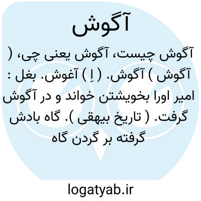 ( آگوش ) آگوش. ( اِ ) آغوش. بغل: امیر اورا بخویشتن خواند و در آگوش گرفت. ( تاریخ بیهقی ).