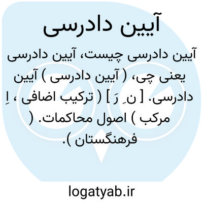 ( آیین دادرسی ) ( اسم ) مقرراتی که در رسیدگی بدعاوی کیفری و حقوقی از طرف دادگاهها و مائ موران دادرسی و اصحاب دعوی باید رعایت شود. یا آیین دادرسی کیفری. مقرراتی که در تشریفات رسیدگی بامور کیفری از طرف افراد و مقامات قضائی و افرادی که بنحوی از انحا در دعاوی مدنی دخالت دارند در تمام مراحل رسیدگی باید رعایت شود.