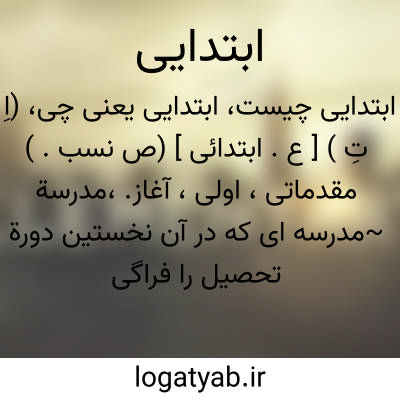 (اِ تِ ) [ ع. ابتدائی ] (ص نسب. ) مقدماتی، اولی، آغاز.،مدرسة ~مدرسه ای که در آن نخستین دورة تحصیل را فراگیرد.