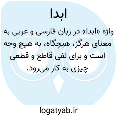واژه «ابداً» در زبان فارسی و عربی به معنای هرگز، هیچگاه، به هیچ وجه است و برای نفی قاطع و قطعی چیزی به کار می‌رود. این واژه معمولاً در جملاتی به کار می‌رود که گوینده قصد دارد رد کامل یک احتمال، رفتار یا رویداد را بیان کند و هیچ نوع تردیدی در آن وجود ندارد. کاربرد این کلمه در ادبیات فارسی و متون دینی بسیار رایج است و بیانگر شدت نفی و قطعی بودن یک موضوع است.