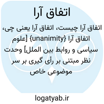{unanimity} [علوم سیاسی و روابط بین الملل] وحدت نظر مبتنی بر رأی گیری بر سر موضوعی خاص