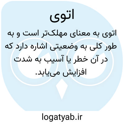 اتوی به معنای مهلک‌تر است و به طور کلی به وضعیتی اشاره دارد که در آن خطر یا آسیب به شدت افزایش می‌یابد. این واژه معمولاً در بافت‌های مختلف به کار می‌رود و می‌تواند به معنای وضعیتی باشد که در آن عواقب ناگواری در انتظار فرد یا جامعه است. در واقع، اتوی به عنوان یک مفهوم هشداردهنده عمل می‌کند و به ما یادآوری می‌کند که باید هوشیار باشیم و از خطرات احتمالی دوری کنیم. در شرایطی که افراد یا جوامع در معرض خطرات جدی قرار دارند، درک دقیق از مفهوم اتوی می‌تواند ما را به سمت اقداماتی مؤثرتر هدایت کند و از بروز مشکلات بزرگتر جلوگیری کند. پس لازم است که با دقت به این مسائل توجه کنیم و راهکارهای مناسب را برای کاهش خطرات شناسایی و اجرا نماییم.