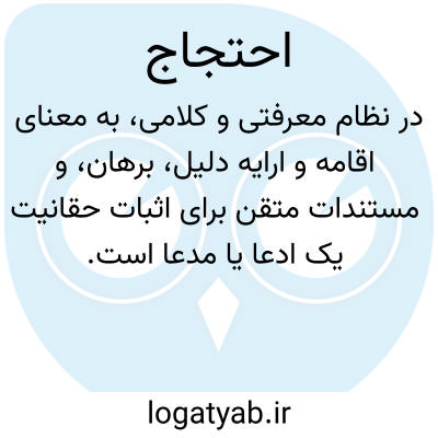 در نظام معرفتی و کلامی، به معنای اقامه و ارائهٔ دلیل، برهان، و مستندات متقن برای اثبات حقانیت یک ادّعا یا مدّعا است. این واژه از باب افتعال و ریشهٔ «حجّ» به معنای قصد و سمتگیری مشتق شده است. در اصطلاح، احتجاج عملی است که طی آن شخص استدلالکننده، چیزی را به عنوان حجّت بر مدّعای خویش مطرح میسازد. این معنای لغوی و اصطلاحی ارتباط تنگاتنگی با مفهوم «قصد» دارد؛ زیرا دلیلی که اقامه میشود، هدف و مقصود نهایی شخص استدلالکننده برای تحقق بخشیدن به اثبات حقّانیت مطلب مورد نظر وی میباشد.
