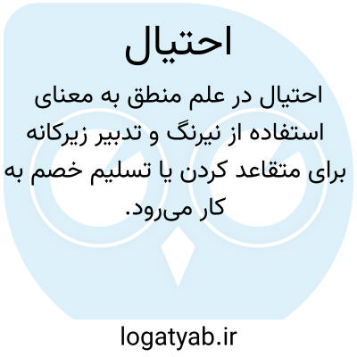 در علم منطق به معنای استفاده از نیرنگ و تدبیر زیرکانه برای متقاعد کردن یا تسلیم خصم به کار میرود. از منظر لغوی، به معنای بهکارگیری حیله و نیرنگ است و در اصطلاح منطقی، به معنای بهکارگیری فنون و تدابیری است که در جریان بحث و جدل، برای طرف مقابل آشکار نباشد و بتواند نتیجهای مشخص در اثبات یا دفاع از نظر مورد نظر به دست آورد. این اصطلاح نشاندهنده جنبهای از هنر استدلال است که نیازمند هوشمندی و دقت در انتخاب شیوههای منطقی و فنی در گفتگو و مناظره است.