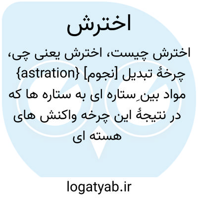 {astration} [نجوم] چرخۀ تبدیل مواد بین ِستاره ای به ستاره ها که در نتیجۀ این چرخه واکنش های هسته ای با عناصر سنگین غنی می شود و سپس به صورت باد ستاره ای یا سحابی سیاره ای یا اَبَرنواختر به فضای بینِ ستاره ای بازمی گردد