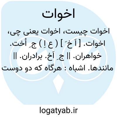 اخوات. [ اَ خ َ ] ( ع اِ ) ج ِ اُخت. خواهران. || ج ِ اَخ. برادران. || مانندها. اشباه: هرگاه که دو دوست بمداخلت شریری مبتلی گردند هرآینه میان ایشان جدائی افتد و از نظایر و اخوات آن حکایت شیر است و گاو. ( کلیله و دمنه ). و کسب ارباب حرفت و امثال واخوات این معانی بعدل متعلق است. ( کلیله و دمنه ).