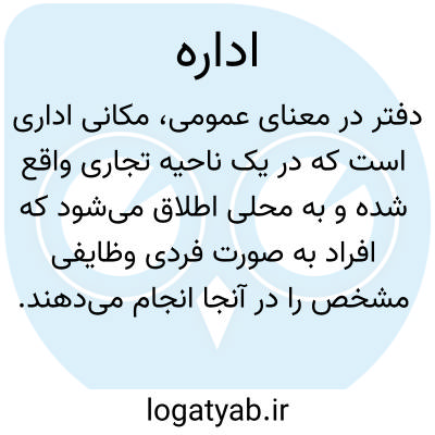 اداره. [ اِ رَ / رِ ] ( از ع، اِ ) قسمتی از وزارتخانه. هر وزارتخانه به چند اداره و هر اداره به چند دائره منشعب شود. ج، اِدارات.