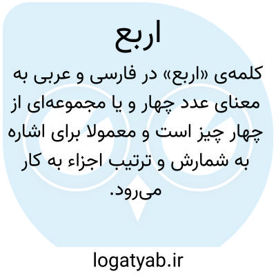 کلمهی «اربع» در فارسی و عربی به معنای عدد چهار و یا مجموعهای از چهار چیز است و معمولاً برای اشاره به شمارش و ترتیب اجزاء به کار میرود. این واژه ریشه در زبان عربی دارد و شکل جمع آن «أربعة» است که عدد چهار را نشان میدهد و در متون دینی، ادبی و تاریخی کاربرد فراوان دارد. اربع میتواند به صورت صفت یا اسم استفاده شود و نشاندهنده ترتیب یا تعداد مشخصی از اشخاص، اشیاء یا امور باشد. در متون اسلامی و روایی، اربع گاهی برای تعیین تعداد شاهد، اجزاء یک مراسم یا تعداد افراد خاصی که باید در یک عمل مشارکت داشته باشند به کار میرود. علاوه بر این، در مکالمات روزمره و نوشتارهای رسمی، این واژه برای اشاره به چهارگانگی یا چهارگان عناصر یک مجموعه نیز استفاده میشود. اربع با مفاهیمی مانند چهار، چهارگان، چهار قسمت و چهار عضو هممعنی است و در شمارش، نظمدهی و تعیین تعداد دقیق نقش مهمی دارد. به طور کلی، این واژه نمادی از عدد چهار و ترتیب مرتبط با آن است و در زمینههای مختلف علمی، دینی و اجتماعی کاربرد فراوان دارد.