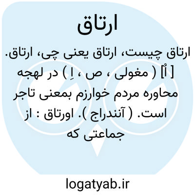 ارتاق. [ اُ] ( مغولی، ص، اِ ) در لهجه محاوره مردم خوارزم بمعنی تاجر است. ( آنندراج ). اورتاق: از جماعتی که میگویند ما ارتاق میشویم و بالش میگیریم تا سوددهیم. ( جهانگشای جوینی ). و آنچ بتازگی ارتاق میشوندو در عهد گذشته پیش از جلوس مبارک که ارتاقان معتبررا یرلیغ و پایزه بودی. ( جهانگشای جوینی ). و چون ارتاقان پیوسته بکسب خود مشغولند هر کس در موضعی که درشماره آن آمده باشد... ( جهانگشای جوینی ). فرمان داد که شریف و وضیع از ارتاقان و اصحاب عمل و شغل با زیردستان پای بیرون فرونکنند. ( جهانگشای جوینی ). ارتاقی بحضرت او آمد و پانصد بالش سرمایه گرفت. ( جهانگشای جوینی ). || پیله ور. || شریک. انباز. مصاحب. و ظاهراً ارتاق کسی است که سرمایه از شاهی یا بزرگی می گرفته است و در سود او را شریک می کرده است با شرط بقاء سرمایه. و رجوع به ارتاقی شود.