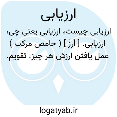 عمل ارزیاب عمل یافتن ارزش و بهای هر چیز سنجش و بررسی حدود هر چیز و بر آورد کردن ارزش آن تقویم: ( خانه های شهر ارزیابی شد. )