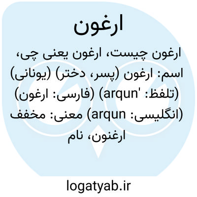 اسم: ارغون (پسر، دختر) (یونانی) (تلفظ: 'arqun) (فارسی: ارغون) (انگلیسی: arqun)