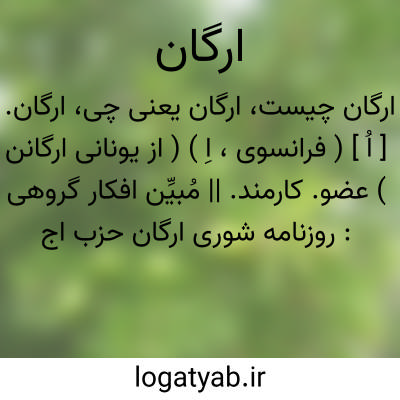 ارگان. [ اُ ] ( فرانسوی، اِ ) ( از یونانی ارگانن ) عضو. کارمند. || مُبیِّن افکار گروهی: روزنامه شوری ارگان حزب اجتماعیون بود.