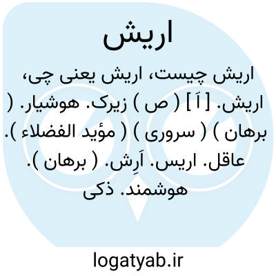 اریش. [ اَ ] ( ص ) زیرک. هوشیار. ( برهان ) ( سروری ) ( مؤید الفضلاء ). عاقل. اریس. اَرِش. ( برهان ). هوشمند. ذکی.