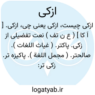 ازکی. [ اَ کا ] ( ع ن تف ) نعت تفضیلی از زکی. پاکتر. ( غیاث اللغات ). صالحتر. ( مجمل اللغة ). پاکیزه تر. زکی تر: برسولی فرستاده آمد [ حصیری ] تا سلام وتحیت ما [ مسعود ] را اطیبه و ازکاه بخان رساند. ( تاریخ بیهقی چ ادیب ص 209 ). || لذیذتر. ( غیاث اللغات ). || روشن تر. ( مؤید الفضلاء ).