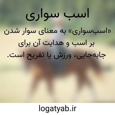 کلمه‌ی «اسب‌ سواری» به معنای سوار شدن بر اسب و هدایت و کنترل آن است. این واژه از ترکیب «اسب» و «سواری» ساخته شده و به فعالیتی اشاره دارد که در آن انسان با استفاده از مهارت، تعادل و قدرت بدنی، حیوان را برای حرکت و جابه‌جایی هدایت می‌کند. اسب‌ سواری در فرهنگ‌های مختلف جهان سابقه‌ای طولانی دارد و در گذشته وسیله‌ای برای سفر، جنگ، شکار و حمل‌ونقل بوده است. امروزه این فعالیت بیشتر به عنوان یک ورزش، هنر یا تفریح شناخته می‌شود و در رشته‌های ورزشی گوناگون مانند درساژ، پرش با اسب و مسابقات سرعت جایگاه ویژه‌ای دارد. این فعالیت نیازمند تمرکز، هماهنگی میان اسب و سوارکار و شناخت رفتار حیوان است. از لحاظ مهارتی، اسب‌ سواری هم جنبه‌ی فیزیکی دارد و هم جنبه‌ی ذهنی، زیرا سوارکار باید بتواند با آرامش و دقت اسب را هدایت کند. در برخی جوامع، یادگیری اسب‌ سواری بخشی از سنت‌ها و آداب محلی است و نسل به نسل به‌عنوان نماد مهارت، شجاعت و هویت فرهنگی منتقل می‌شود.