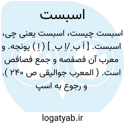 اسبست. [ اَ ب ِ/اِ ب ِ ] ( اِ ) یونجه. و معرب آن فصفصه و جمع فصافص است. ( المعرب جوالیقی ص 240 ). و رجوع به اسپست شود.