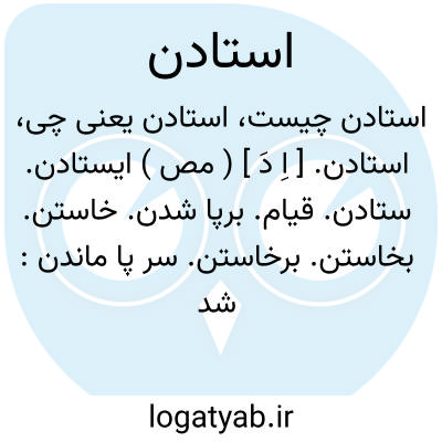 استادن. [ اِ دَ ] ( مص ) ایستادن. ستادن. قیام. برپا شدن. خاستن. بخاستن. برخاستن. سر پا ماندن: