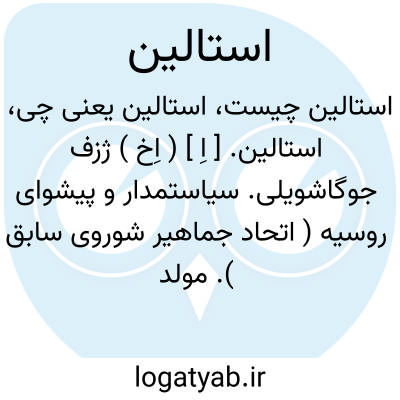 استالین. [ اِ ] ( اِخ ) ژزف جوگاشویلی. سیاستمدار و پیشوای روسیه ( اتحاد جماهیر شوروی سابق ). مولد گرجستان بسال 1879 م. وی از زعمای انقلاب روسیه و از همکاران لنین است. در سال 1923 رئیس کمیساریاها بود و در جنگ جهانگیر دوم ملت شوروی را در مقاومت با سپاهیان آلمان هدایت کرد و فاتح شد. مرگ او بسال 1953 م. بود.