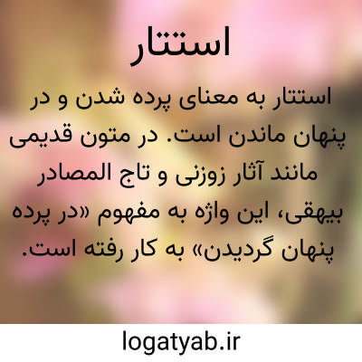 به معنای پرده شدن و در پنهان ماندن است. در متون قدیمی مانند آثار زوزنی و تاج المصادر بیهقی، این واژه به مفهوم «در پرده پنهان گردیدن» به کار رفته است. همچنین در کتاب غیاث و منتهی‌الارب، «استتار» به معنای «پوشیده شدن» و «اختفاء» ذکر شده است. از این منظر، استتار با پوشانیدن، نهان کردن و پنهان داشتن چیزی ارتباط مستقیم دارد و در برخی منابع به صورت مترادف با «تواری» آمده است.