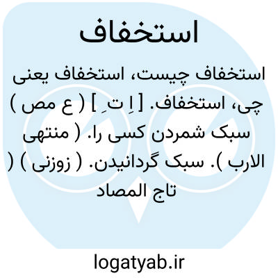 - استخفاف کردن؛ سبک و خوار داشتن. اهانت: مذهب زندقه داشتی و بر مسلمانی عظیم استخفاف کردی. ( مجمل التواریخ و القصص ).