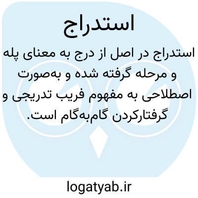 استدراج. [ اِ ت ِ ] ( ع مص ) نزدیک کردن بسوی چیزی بتدریج. قریب گردانیدن کسی را بسوی چیزی بتدریج. ( منتهی الارب ). اندک اندک نزدیک آوردن. پایه پایه برآوردن. || فریب دادن کسی را. || گردانیدن و غلطانیدن باد سنگ ریزه ها را بر زمین. ( از منتهی الارب ). || استدراج ناقه؛ در پی بچه خود رفتن ناقه پس از زائیدن. ( منتهی الارب ). || مضطر کردن کسی را تا آنکه بغلطد بزمین. ( منتهی الارب ). || مهلت دادن. || اندک اندک در کار آوردن: سلطان بفرمود تا بر سبیل استدراج و استنزال لشکر او پشت فرادادند و آن مدابیر بدان خدعت مغرور گشتند. ( ترجمه تاریخ یمینی ص 324 ). || کم کم پرسیدن گرفتن و بالا رفتن: سلطان بوقت استنزال امیر اسماعیل از قلعه غزنه در مجلس انس با او در مباسطت آمد و از مکنون ضمیر او استدراج کرد و از او پرسید... ( ترجمه تاریخ یمینی ص 213 ). || استدراج خدای تعالی بنده را؛ فراوان دادن نعمت در وقت معصیت. نعمت دادن او تعالی ببنده پس از صدور خطا از وی و فراموشانیدن توبه و استغفار او را و گرفت کردن او را اندک اندک و هلاک نکردن او را ناگاه و بیک بار. ( از منتهی الارب ). اندک اندک نزدیک گردانیدن خدا بنده را بخشم و عقوبت خود. ( تاج المصادر بیهقی ) ( زوزنی ). اندک اندک نزدیک کردن عذاب. ناگاه گرفتن در سختی پس از نعمت. الاستدراج؛ الدنو الی عذاب اﷲ بالامهال قلیلاً قلیلاً. ( تعریفات جرجانی ). الاستدراج؛ هو ان یکون بعیداً من رحمةاﷲ تعالی و قریباً الی العقاب تدریجاً. ( تعریفات جرجانی ). الاستدراج؛ هو ان یقرب اﷲ العبد الی العذاب و الشدة و البلاء فی یوم الحساب کما حکی عن فرعون لما سأل اﷲ تعالی قبل حاجته للابتلاء بالعذاب و البلاء فی الاَّخرة. ( تعریفات جرجانی ):