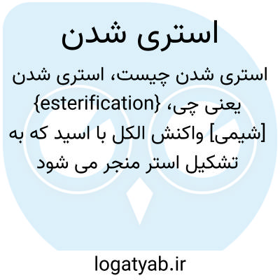 {esterification} [شیمی] واکنش الکل با اسید که به تشکیل استر منجر می شود