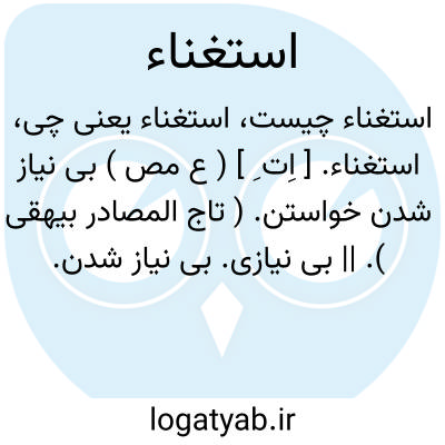 [ویکی فقه] اسْتِغْنَاءً (غنی ): در لغت یعنی توانگر و بی نیاز شد، استغنی الله: یعنی از خدا خواست که او را توانگر کند، استغنی عنهُ به: از او بی نیاز شد.