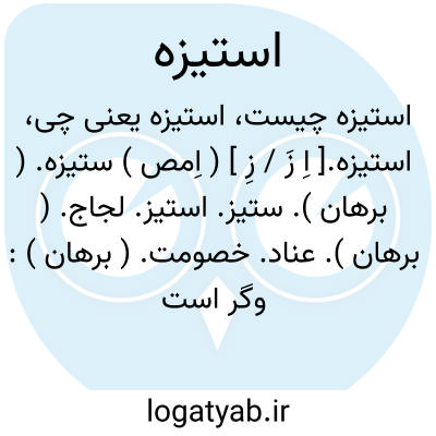 استیزه.[ اِ زَ / زِ ] ( اِمص ) ستیزه. ( برهان ). ستیز. استیز. لجاج. ( برهان ). عناد. خصومت. ( برهان ):