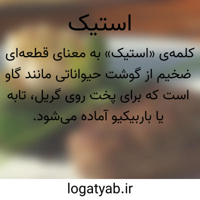 کلمهی استیک «steak» در فارسی به معنای قطعهای گوشت است که معمولاً از بخشهای خاصی از بدن حیوان مانند گاو تهیه میشود و به شکل یک تکهی ضخیم بریده شده و برای پختن روی گریل، تابه یا باربیکیو آماده میشود. مناسبترین قسمتهای گوشت گاو برای تهیه آن عبارتاند از فیله که نرم و کمچرب است، راسته که کمی سفتتر اما خوشطعم است، دنده کوتاه که چربی بیشتری دارد و آبدار است، و ساق که نسبتاً سفت و ارزانتر بوده و نیاز به دقت در پخت دارد.