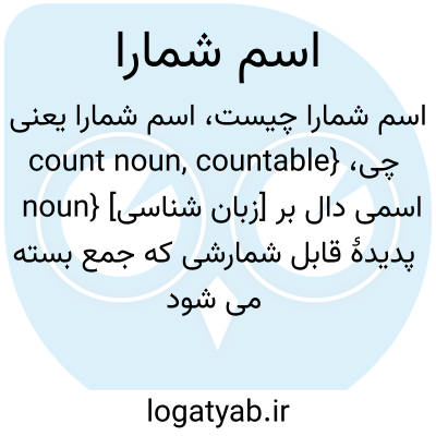 💡 اسم شمارا یا اسم شمارش‌پذیر در زبان‌شناسی اسمی است که می‌توان عدد به آن افزود، آن را به هر دو صورت مفرد و جمع دید و همراه با تخصیص‌گران کمی همچون هر، همه، بسیار و… می‌آید. اسم ناشمارا دقیقاً در مقابل اسم شمارا قرار می‌گیرد و هیچ‌یک از این خصوصیات را ندارد.
