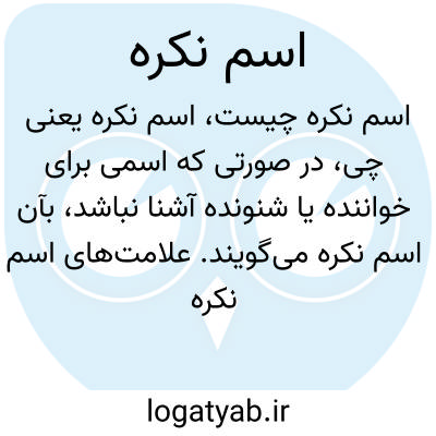 💡 در صورتی که اسمی برای خواننده یا شنوده آشنا نباشد، به آن اسم نکره می‌گویند. مانند جمله «دوستی را دیدم» که در آن خواننده نمی‌داند که آن دوست چه کسی است.
