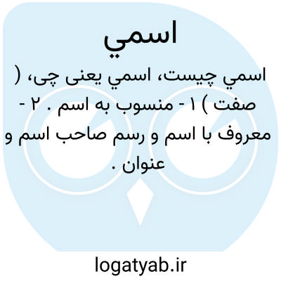 ( صفت ) ۱ - منسوب به اسم. ۲ - معروف با اسم و رسم صاحب اسم و عنوان.